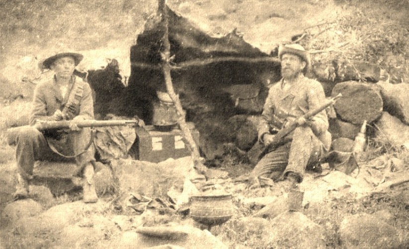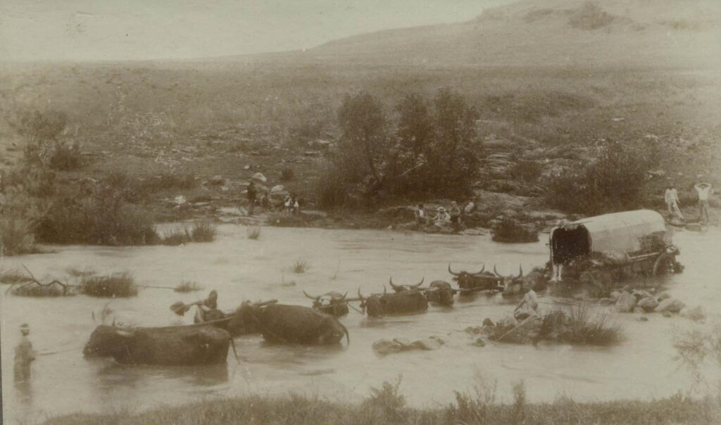 In de maand mei ging de heer Kruger met een vracht tabakrollen op tocht zoals dat toen genoemd werd naar Pert Natal. Op mijn verzoek mede te gaan, daar ik ook wat rollen tabak had gaf hij toestemming. Daar het plan bestond om recht door naar Pieter Maritzburg te gaan, werd dat verhinderd daar de ossen die hij voor de wagen had door de scherpe koude zeer afvielen en hij dus besloot naar Ladysmith te gaan (Beroemd uit de Eng. Boeren oorlog). Daar aangekomen werd de hele vracht aan een winkelier verhandeld en keerden we terug. In Ladysmith werd ons gezegd om als we de Drankensbergen over en in de Vrijstaat zouden gekomen zij des avonds onze ossen niet te ver van de wagen te laten weiden, want dat er enkele Basuto’s rondliepen die mogelijk de ossen konden stelen. De eerste zondag vanaf Ladysmith lagen we stil over tot tegen den avond toen we tot onder Drakensberg op pad na Harrismit kwamen en daar mensen van Transvaal kregen die er uitgespannen waren en van Pieter Maritzburg kwamen. De volgende dag vroeg voor dagbreek spande we in en gingen verder tot we op een groot Commando Basuto’s allen te paard en goed gewapend afkwamen die de berg af Natal gebied ingingen, welke dag we beroofd en door Gods genade er nauwelijks met ons leven uitgekomen zijn. Het was op de 27e juni 1865 dat ons die ramp overgekomen is. Omdat ik die gehele geschiedenis ervan vroeger beschreven en aan mijnheer Malherbe die bij de oprichting van de brandwacht destijds aan ’t Volkstemkantoor bezig was gegeven heb voor ’t vermelden van een stukje geschiedenis er van voor ons volk, ga ik er nu niet verder op in. Genoeg zij gezegd dat toen we in augustus thuiskwamen een commando uit de S.A. Republiek na Basutoland ging en de stamleden van Moshesse een goed pak slagen gegeven hebben, en met heel wat buit aan beesten, paarden, schapen en bokken terugkeerde.
