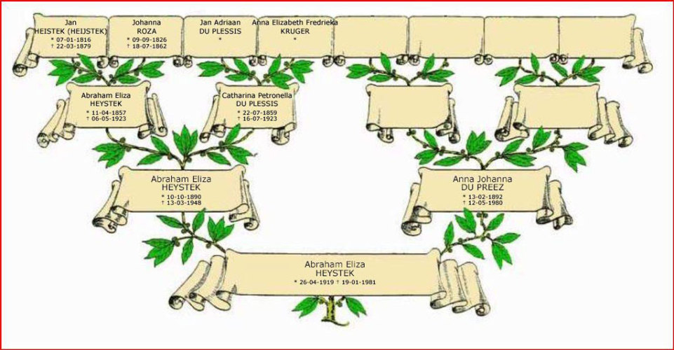Abraham Eliza Heystek is een achterkleinzoon van de in Nederland geboren Jan Heystek, de stamvader van de “Heystekke” in Zuid Afrika en van de eveneens in Nederland geboren overgrootmoeder Johanna Roza die helaas de reis naar Zuid Afrika niet heeft kunnen voltooien.