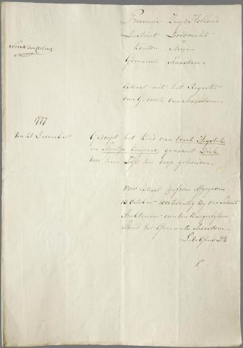 Dirk Heijstek werd op de 21e december van het jaar 1777 gedoopt. Hij zal ook op die dag zijn geboren of mogelijk een dag eerder. Zijn vader kennen we als Evert Heijstek (geboren in Almkerk) en zijn moeder als de in Maasdam geboren Stijntje Kuijpers.