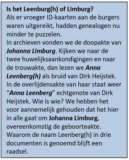 Johanna Limburg overleed twintig dagen na de geboorte van haar laatste kind. Aan het krijgen van kinderen was in die tijd voor vrouwen nog een groot risico verbonden. Dat haar verlijden in relatie stond met de laatste geboorte is aannemelijk.