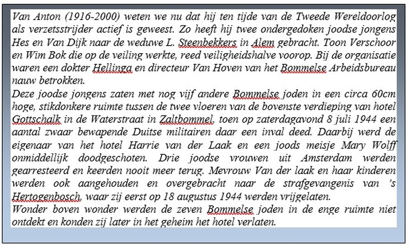 In de weblog publicatie “Is Verschoor familie van Verschoor?“ is Anton aangehaald. Hij zou afstammen van Melis Schoir en deelt dus voorouders met Teuntje Heistek-Verschoor en met Cornelia Heijstek-Verschoor. Nieuwsgierigheid is een genealoog niet vreemd zodat we op speurtocht zijn gegaan naar meer gegevens van deze Antonie die ook wel ome Toon werd genoemd.