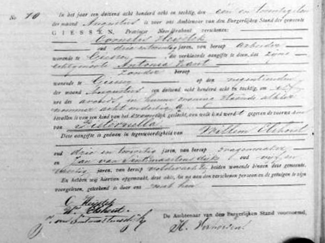 Op donderdag de 19e augustus 1888 werd, ’s morgens rond de klok van elf uur in het Noord-Brabantse dorpje Giessen, Pieternella Heijstek geboren als dochter van Cornelis Heijstek en Antonia Kant. Drie dagen later zal vader Cornelis, die arbeider van beroep is, zijn dochter bij de gemeente aangeven. Pieternella was het eerste kind in het gezin, na haar werden nog zeven kinderen geboren.