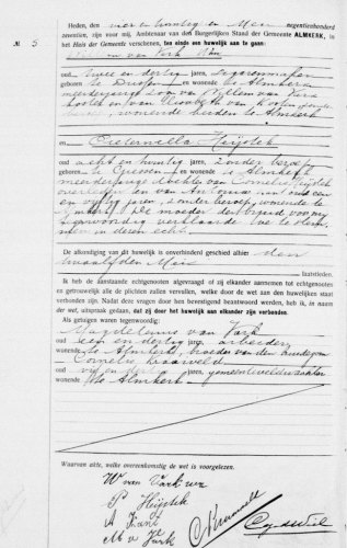 Trouwakte Willem van Vark & Pieternella Heijstek; 24-5-1917 Almkerk