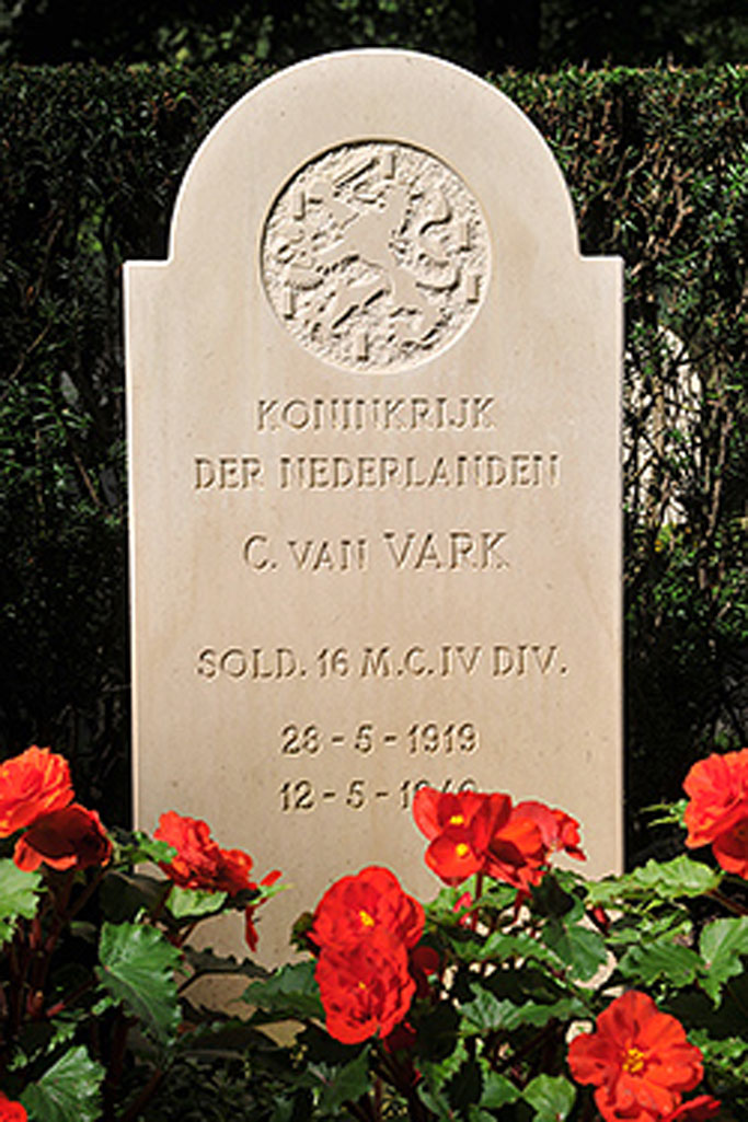 De volgende morgen werd Cornelis opgeroepen. Hij werd bij de bataljonscommandopost verwacht waar gewonde soldaten op zijn hulp lagen te wachten. Met tassen gevuld met verbandmiddelen en medicaties verliet hij zijn stelling en toog in de richting van het Ouwehand’s Dierenpark waarachter zich de commandopost zou bevinden. Nadat hij een prikkeldraad versperring was gepasseerd, werd hij aangeroepen door twee wachtposten. Zij richten hun geweer op hem en roepen “het wachtwoord, het wachtwoord”. Cornelis kon dat niet beantwoorden, hij kende het niet of hij was het vergeten. Wel vertrouwde hij op de witte band om zijn arm met daarop het rode kruis. Dat was zijn “paspoort” om veilig langs controleposten te komen. Niets bleek nu minder waar. Hij wijst nog naar de witte band, maar de wachtposten verdenken de man van kwade trouw. Zij halen de trekker van hun wapen over en schieten hospitaalsoldaat Cornelis van Vark neer. Hij overlijd ter plekke. In een rapport over dit voorval wordt genoteerd: “gesneuveld door eigen vuur”. Het is dan 16 mei 1940, ’s morgens om 10:00h. Cornelis is nog maar 19 jaar jong. Zijn lichaam werd op de 16e mei gevonden. Diezelfde dag werd hij begraven in het 1e Hollandse graf bij paal 42.