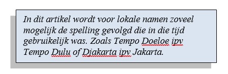 In de singel voor zijn huis gooide Huib dagelijks een hengeltje uit. Daar aan het water, meer had hij niet omhanden, liet hij zijn gedachten teruggaan naar mooie tijden in het Nederlands Indië. Het was zijn ritueel geworden om in gedachten terug te keren naar “de Gordel van Smaragd”. De streek waar hij in de voorbije decennia van was gaan houden. Geen dag passeerde zonder dat hij over zijn jaren in het Verre Oosten sprak. Turend naar zijn visdobbertje zag hij zich zitten onder een klapperboom aan de oever van de een of andere koele kali. Hij miste de vele soorten sambals, de soto-ayams en de kenmerkende geur van de locale kruidenmengsels. En niet te vergeten de kreteksigaretten met hun zoete weeïge geur. Als een straatverkoper door de Beukenlaan kwam rijden dacht hij dat het een kaki-lima was. Huibert had heemwei. Volgens zijn kinderen is hij uiteindelijk daar aan overleden.