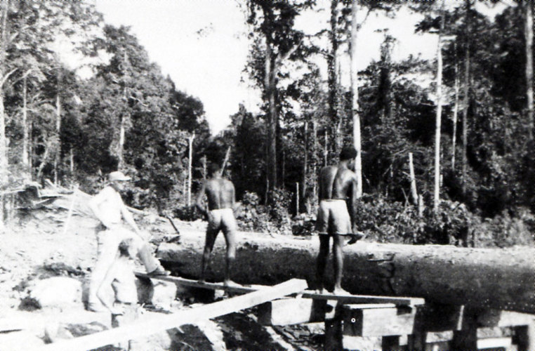Een kleine groep Hollandse mannen aangevuld met Papoea werkkrachten begon een brede strook in de jungle van de vloedbossen aan de zuidkust te kappen om daar een pijpleiding aan te leggen voor de olie , die zich daar absoluut zou bevinden. Er werden overal proefboringen gedaan voor de Shell, die in Sorong al olie won en tankopslag bezat. Deze betrekkelijk kleine groep mensen moest er voor zorgen dat na ongeveer een jaar deze olie door de pijpleiding zou stromen naar Steenkool, dat tankers daar konden aanmeren en deze ruwe olie naar de raffinaderij in Sorong zou vervoeren. Mijn vader was speciaal belast met de aanleg en bouw van een jukkenbrug, waarop deze dikke pijp moest rusten. Deze moest absoluut stabiel liggen in een nogal drassige moerasbodem, ten dele in de vloedbossen van de kust, soms over een riviertje of een dalglooiing. Verzakking zou een ramp kunnen betekenen. Het werk vorderde goed, ondanks de zeer warme en vochtige klimatologische omstandigheden.