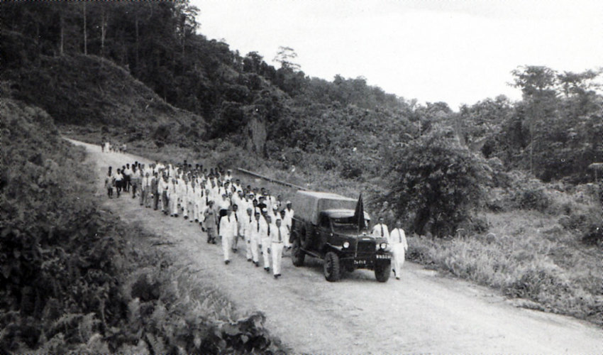 Bijna een jaar later is het einde van de aanleg van de pijpleiding in zicht. Kilometers diep de jungle in rijdt een werktreintje met materialen voor de boortorens en de hei-installaties. Dan slaat plotseling het noodlot toe. Er begint een boortoren of iets dergelijks te bewegen en valt om. Marinus wordt vol getroffen en is zwaar gewond. Direct een radiobericht naar Steenkool voor hulp. Een tocht met de Mappiboot van vele uren over de rivier liggend op een brancard. Nog een boot met een dokter komt hem tegemoet. Iedereen bij de aanlegsteiger in Steenkool loopt te wachten en is bezorgd om hem. In het kleine, maar goede ziekenhuisje van de Nederlandse Aardolie Mij. wordt hij op de operatietafel gelegd. Onder narcose en tijdens de operatieve ingreep overlijdt hij. Iedereen is verslagen. De volgende dag wordt hij begraven. Toevallig is juist een legerpredikant op doorreis, die voor hem een plechtige uitvaart verzorgt. Ongeveer iedereen die daar woont , zo`n 75 mensen lopen mee in de begrafenisstoet. Er worden veel bloemen en kransen neergelegd op de kist. De kern van de korte toespraak die de predikant hield was: “De mens werkt voor zijn gezin, doch God beschikt wanneer de mens voldoende op aarde heeft volbracht.”