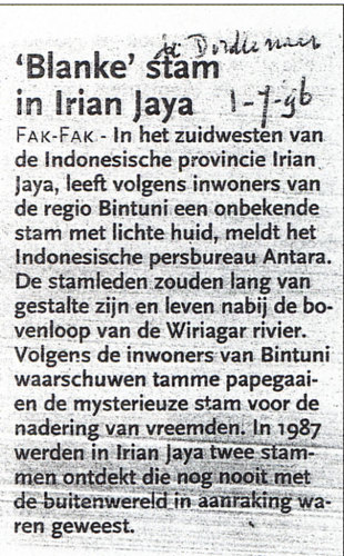 Toch beschrijft mijn vader dat er niet ver bij hen vandaan , nog een wilde stam woont. De Mentions, die nog geen contact hebben met de Zending of Missie. Ze willen ook niet bij hen werken en vandaar ook de import Papoea`s uit Merauke, Fak-Fak, Manokwari etc. Als die “wilden” langs trekken zijn onze Papoea`s bang en zoeken bescherming bij ons. (Zie ook het krantenartikel wat ik veel later tegenkwam).