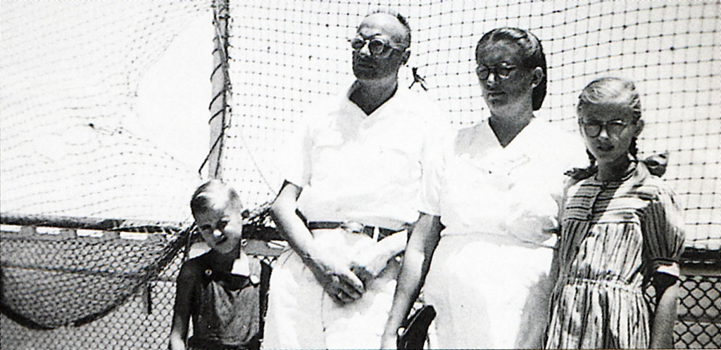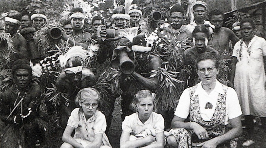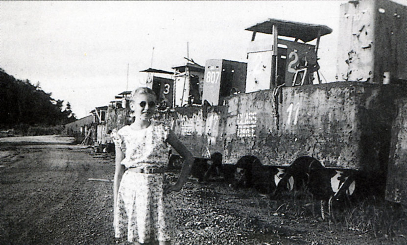 Enkele maanden later mocht onverwacht een groepje vrouwen en kinderen voor gezinshereniging zich inschepen op het M.S. “Tarakan”. Wij voeren precies 44 dagen van Amsterdam naar Hollandia op een vrachtschip met passagiersaccommodatie. Ook wij ondergingen een cultuurschok. Zo vlak na de oorlog en de distributiebonnen zagen wij een primitief volk, schaars gekleed varen in uitgeholde boomstammen naar hun paalwoningen in de prachtige baai van Hollandia (nu Djayapura). In de weekends ging mijn vader altijd met het gezin op ‘ontdekkingsreis’. Met de auto voor zover er een weg was aangelegd, verder in de prauw of lopen. Zo zagen we het bestaan van een primitief volk, voedsel verzamelen, vuur maken, boombast kloppen voor kleding, sago wassen uit de sagopalm, eieren eten van zeeschildpadden en een krokodil. Ook ontstond in die jaren een interessante collectie van schelpen en etnografica. Wat heeft papa ons laten genieten van zijn onbeperkte nieuwsgierigheid. Na ruim twee jaar waren de werkzaamheden voor hem ten einde en kon een gewone burgerlijke samenleving verder gaan op de resten van het Amerikaanse invasieleger. Elk gezin had ook restanten gekregen of gekocht, vnl. huishoudelijke goederen.