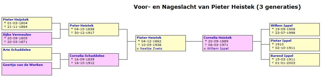 In het gezin van Pieter en Neeltje werd geen zoon geboren zodat na het overlijden van Cornelia in 1971, deze Heistek-tak van onze familie eindigde.