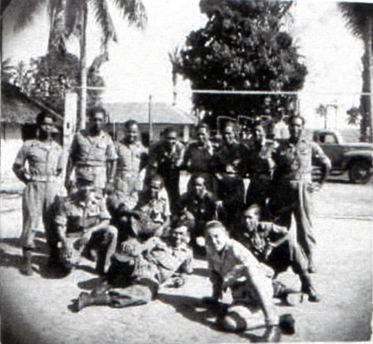 Daar aan de haven heb ik een tijdje rondgeloopen met verschillende andere mannen maar er was geen kans dat wij aan boord konden komen. Ik er op uit met een paar andere jongens om een boot te pakken te krijgen waarmede wij zelf mee naar het schip konden gaan. Ik heb er 1½ uur rondgereden in een auto naar de Aussies naar de Amerikanen naar de Engelschen maar alles voor niets. Om ongeveer half elf hebben wij de pogingen opgegeven en zijn naar huis gegaan. Afsprekende de andere morgen om zeven uur weer naar de haven te vertrekken. Het was intussen al half twaalf geworden en ik zat nog wat na te praten met mijn buurman toen er een auto stopte vlak voor mijn hut. Mijn buurman zeide daar is de luitenant en ik naar boven en vroeg aan de chauffeur van verre “Wie zoekt je”. De chauffeur bleek een goede kennis van mij te zijn en riep mij toe “daar is beneden een dameskennis die je wilt spreken.” Ik verwonderd dat begrijpt u wel en zeg tegen hem ” Een dameskennis? Wie is dat?”. Terwijl ik zoo naar de auto toe loop onder het spreken komt mij daar Gijsje uit de auto rollen, een ander woord kan ik niet vinden en U kunt wel begrijpen wat er de eerste oogenblikken gebeurde. Als jij niet komt kom ik wel zeide ze. We hebben toen nog tot de 20sten daar gehuisd en zijn toen naar Makassar vertrokken waar wij de 22sten aankwamen.