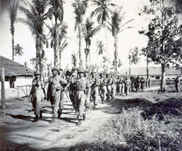 2 december 1945 1e transport naar Semarang. De kanonnen van de “Sussex” op de rede van Semarang, houden de weg tussen Semarang en Ambarawa vrij van extremisten. Dit nu is onze bevrijding.