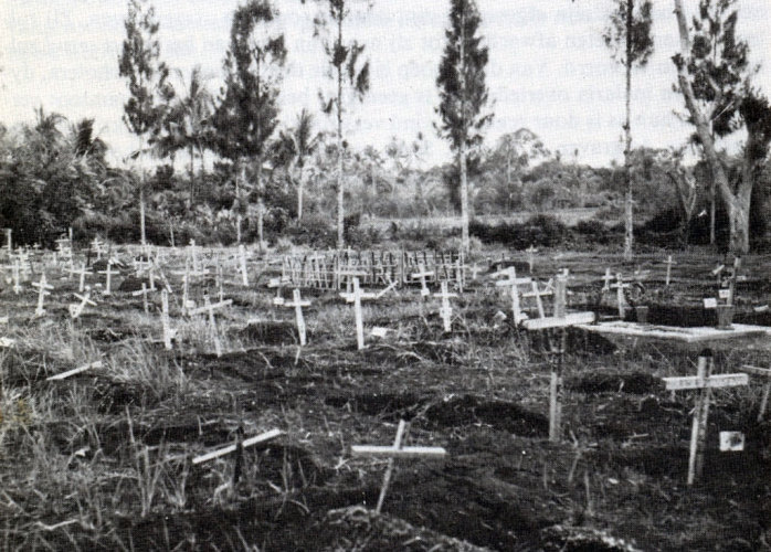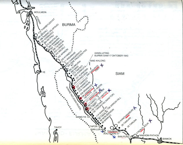 Citaat: In juli begonnen de groote transporten zieken uit de jungle-kampen in Chungkai aan te komen. Deze kwamen per trein, met vrachtauto’s (aangezien het regentijd was, gebeurde dit zelden) of met prauwen. Doktoren met enkele verplegers en vrijwilligers stonden “stand-by “. Bij voorkeur arriveerden deze transporten des nachts en moesten zij bij het licht van toortsen werken. De patiënten die meekwamen, verkeerden niet alleen allen in een zeer ernstigen toestand, maar bovendien waren er bijna altijd stervenden bij of lijken van zieken, die eerst kort vóór aankomst in het kamp overleden waren. Wat deze menschen onderweg, opgepakt in beestenwagens of in prauwen, verstoken van voldoende drinkwater en de allernoodzakelijkste verpleging tijdens de reis, die dagenlang duurde te lijden hadden, voordat ze dood gingen, laat zich niet beschrijven.”