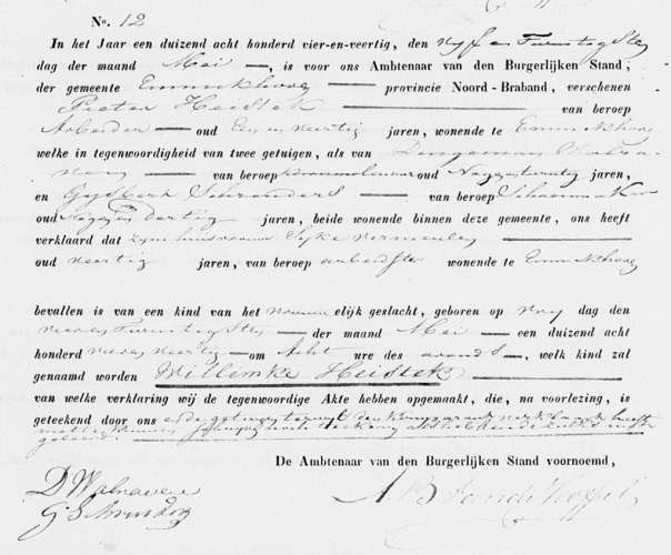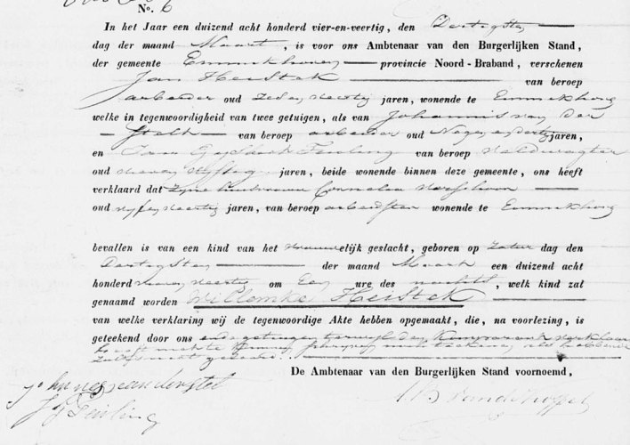 Na voor de tiende keer een zwangerschap te hebben voldragen wordt op zaterdag 30 maart 1844 Willemke geboren waarover later meer. Zij wordt als een “Heistek” in de BS ingeschreven.