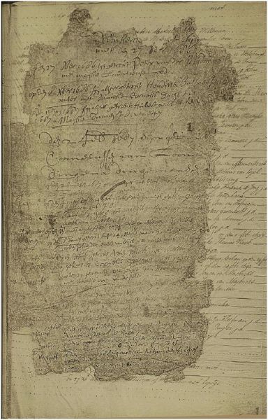 Momenteel worden aan archiefruimten hoge kwaliteitseisen gesteld. De kans dat archiefstukken vochtig worden met een documentvernietigende schimmel als gevolg is gelukkig niet meer zo groot. Toch komen we nog steeds dit soort van stukken tegen.