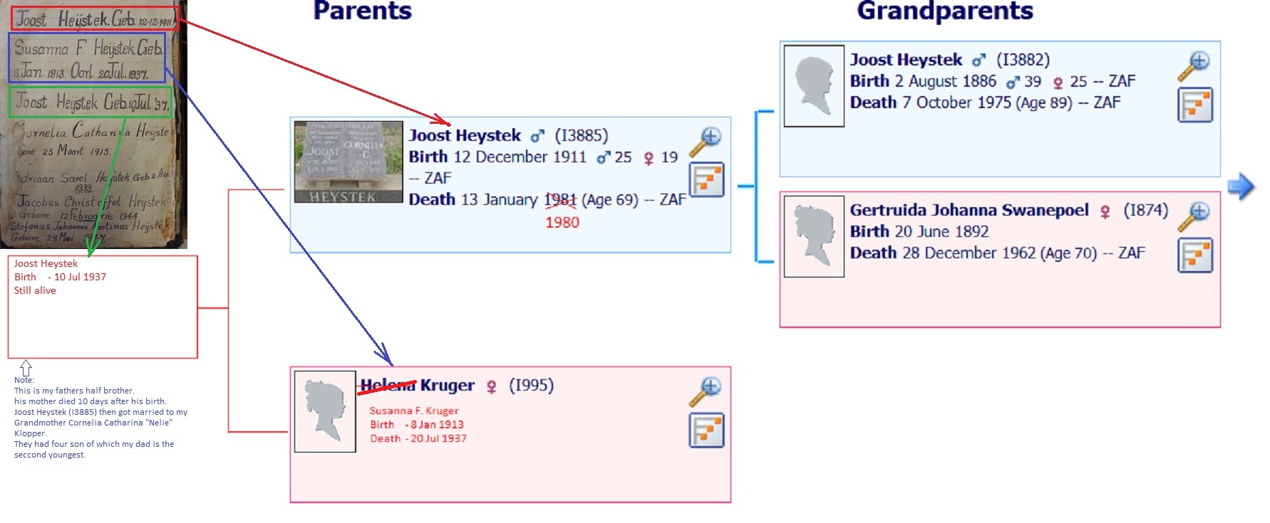 In een familiedatabase met veel meer dan 11.000 personen, valt het niet uit te sluiten dat er in de loop der tijd onjuistheden in zijn geslopen. Zelf komen wij die geregeld tegen en corrigeren die dan terstond. Veel fouten herkennen wij niet omdat de noodzakelijke informatie ontbreekt. U herkent bedoelde onjuistheden wellicht in een oogopslag als het uw familie, uw gezin respectievelijk uw directe voorouders aangaat.