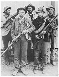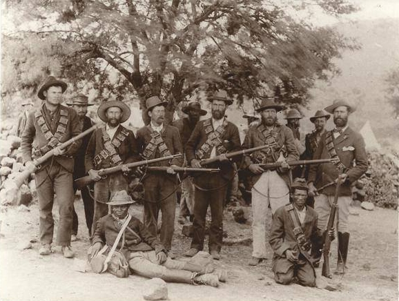 Boerenstrijders met wapen en slappe hoedBegin 1900 beschikte de Engelse legerleiding over 180.000 infanteristen en 34.000 cavaleristen. Als ware het een stoomwals van “khaki’s” trokken zij langs de spoorlijn van Kaapstad naar Bloemfontein, Johannesburg en Pretoria. De Boeren waren niet opgewassen tegen de overmacht. Zij moesten achtereenvolgens het beleg van Kimberley, Ladysmith en Mafeking opgeven en zich terugtrekken. Toen generaal Cronjé eind februari na de Slag bij Paardeberg gevangen werd genomen, zakte het moreel van de Boeren tot een dieptepunt. Steeds meer Boeren gaven de strijd op.