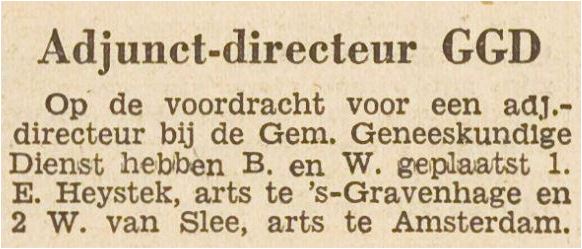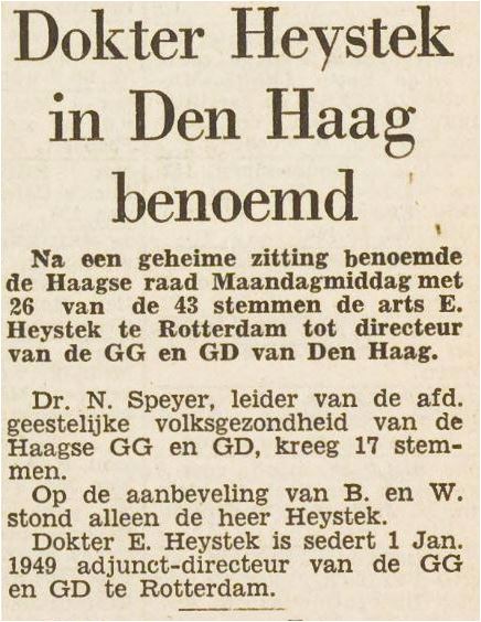 Dat Eddy Heijstek zonder enige terughoudendheid als plaatvervanger probleemloos de taken van de GGD-directeur overneemt blijft niet onopgemerkt. Het resulteert op 1 juli 1955 tot een aanstelling van hem tot directeur van de Gemeentelijke Geneeskundige en Gezondheidsdienst te ’s-Gravenhage.