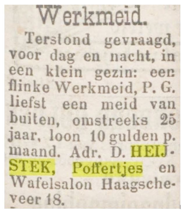 Zijn nicht Stijna Heijstek (Hendrik Ido Ambacht 1801 – Rotterdam 1832) had wellicht het vak geleerd van haar oom Dirk, want ook zij was koekkraamster.
