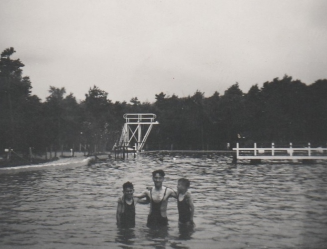 Mijn ouders deden geweldig hun best het vooral de kinderen naar de zin te maken en gezien de diverse foto’s moet dat zijn gelukt. Uitstapjes naar Epe, Harderwijk, Elburg en last but not least het buitenzwembad in Nunspeet. Uw attentie op deze foto voor de badmode van 1948 voor vader en zoons.