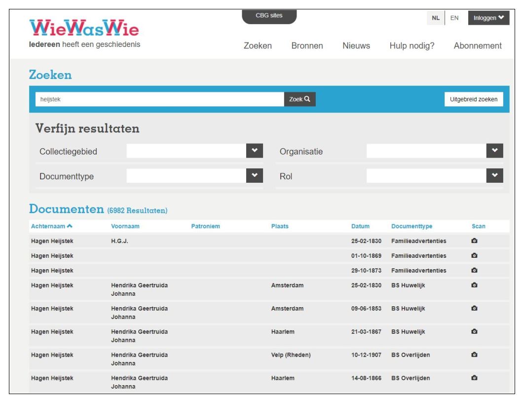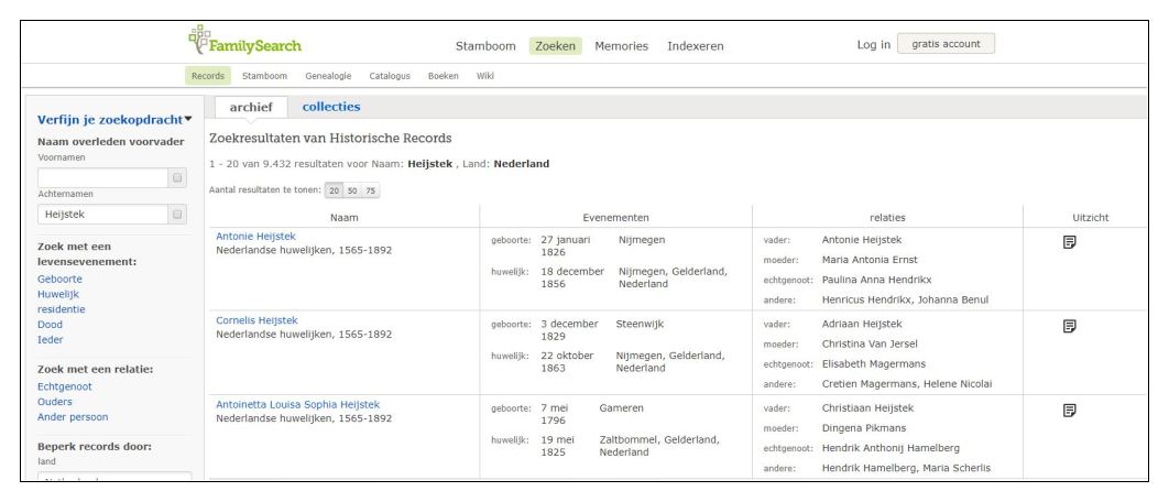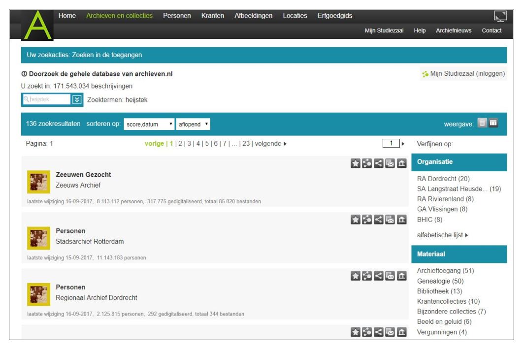 Op een zoekopdracht op deze site volgt een snelle speurtocht binnen enige tientallen Nederlandse archieven en worden de resultaten op een overzichtelijke wijze gepresenteerd. Vaak zijn er downloadbare scans aan gekoppeld.