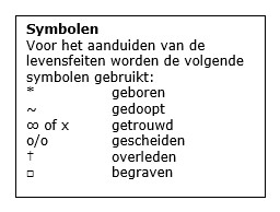 “Recente” data zijn niet openbaar vanwege een bij wet geregelde termijn van openbaarheid. Sedert mei 2018 dienen we rekening te houden met de AVG [wet Algemene verordening gegevensbescherming]. Geboorteakten mogen eerst na 100 jaar openbaar worden gemaakt, huwelijksakten na 75 jaar en overlijdensakten na 50 jaar. Deze gegevens vindt u dus niet terug op het internet.