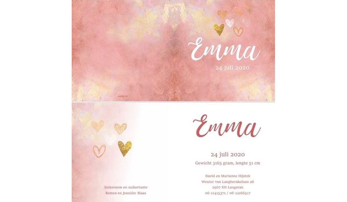 We feliciteren de ouders en wensen Emma een lang en gezond leven.