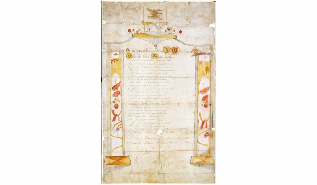 Toch is het voor beiden een mooie hartverwarmende dag geworden. Niet in zijn minst omdat de broer van de bruid een toepasselijk gedicht had geschreven op een fraai beschildert vel papier dat gelukkig bewaard is gebleven.
