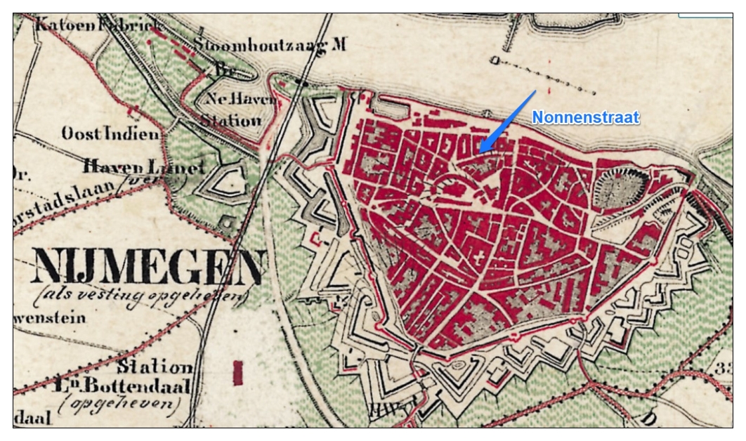 Twee jaar nadien, het was toen 12 november 1868, trouwde Adrianus in de vestingstad Nijmegen met Johanna. Om bloedschande te voorkomen werd het kind door beide ouders erkend. Zo wijzigde de naam van Wilhelmus Piels in Wilhelmus Heijstek. Het gezin Heijstek-Piels ging wonen in de Nonnenstraat wijk D, nr. 362. Deze smalle straat bestaat nog steeds in Nijmegen.