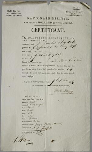 Inschrijving Jan Jacobus voor de Nationale Militie in 1817