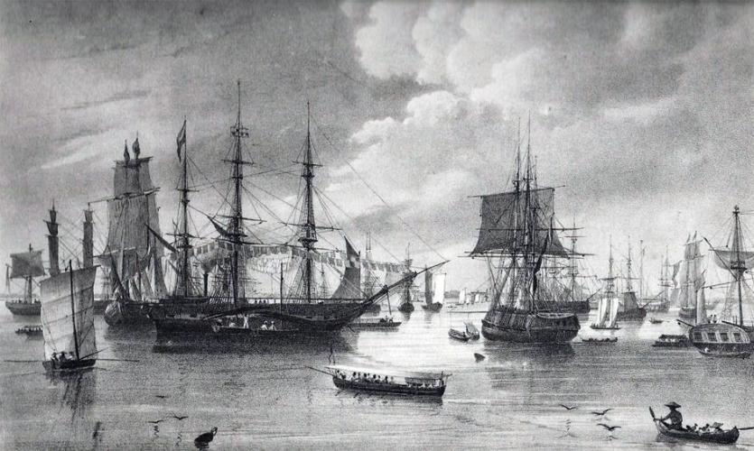 Uit dit couplet komt het afscheid mij voor de geest. Het is begin augustus 1851 als Johannes afscheid neemt van zijn ouders en zijn dan 11-jarige broer Antonie en in Rotterdam aan boord stapt van de Jacoba Helena. Het eerste deel van de reis gaat “binnendoor” naar Hellevoetsluis, een flinke omweg, want er is nog geen Nieuwe Waterweg. In de krant van 16 augustus 1851 lezen we: “Volgens particulier berigt is heden van Hellevoetsluis, gesleept door stoomboot Brouwershaven in zee gezeild het fregatschip Jacoba Helena, kapitein Pfeil, van deze stad naar Batavia.”