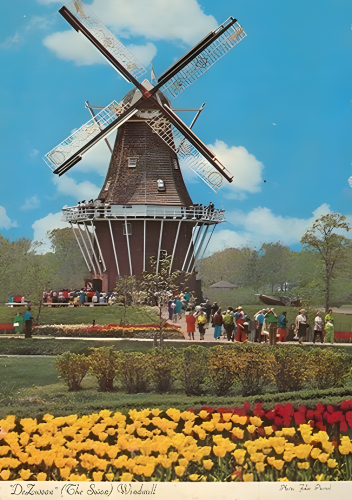 Kijk eens naar de foto links, een echt Nederlands landschap, een molen te midden van de bollenvelden. Echter het betreft hier een ansichtkaart uit de stad Holland in Michigan van molen “De Zwaan”, die in 1964 vanuit Nederland naar Holland (Michigan) werd gezonden.