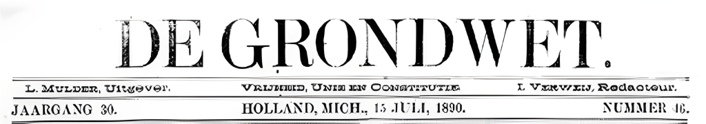 De emigranten waren evenmin verstoken van het nieuws uit hun vaderland. In de stad Holland werd al vanaf 1860 een Nederlandstalige krant uitgegeven met de toch wel bijzondere naam ‘”DE GRONDWET”. Hierin nieuwtjes uit zowel Nederland als uit hun nieuwe land. Deze krant werd uitgegeven tot 1938. Hij werd veel gelezen vooral omdat de nieuwaangekomen emigranten de Engelse taal niet altijd beheersten.