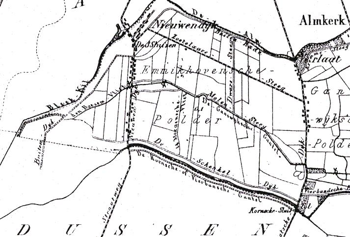 Op de in 1868 getekende kaart (J. Kuijper) is de Nieuwendijk in Emmikhoven te zien. Het is de dijk waar het huisje van Leendert heeft gestaan. Aan de linkerkant van het kaartje is zichtbaar de buitendijk van het buurschap Nieuwedijk. Daar hebben in het verleden minstens zes Heijstek-gezinnen gewoond.